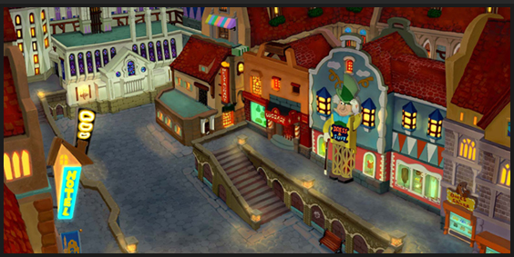 traverse towns district three is home to a large square which is surrounded by many different housing complexes and buildings for the visitors that travel here. this district is also home to many city features like the power supply. located behind a large door in district three is the home of Merlin a very famous wizard who’s own world was destroyed some time ago. his house is surrounded by a moat and water that runs from the cities secret waterway.